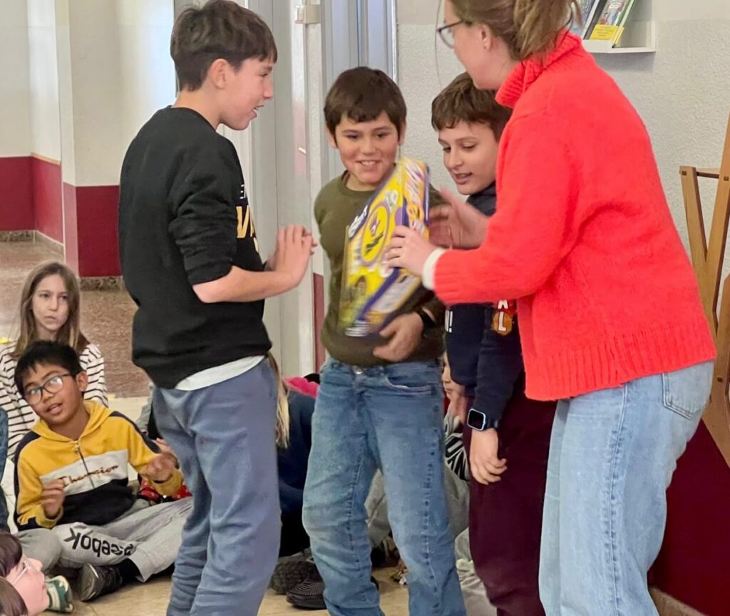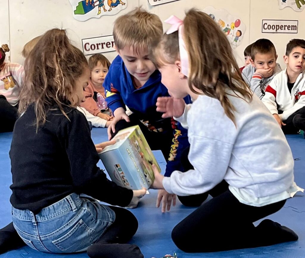 A l’escola ens encanta compartir activitats i aprendre dels alumnes més grans! Mentre els menuts llegien endevinalles relacionades amb el projecte d’infantil que havien escrit ells mateixos, els grans de la primària les resolien.
